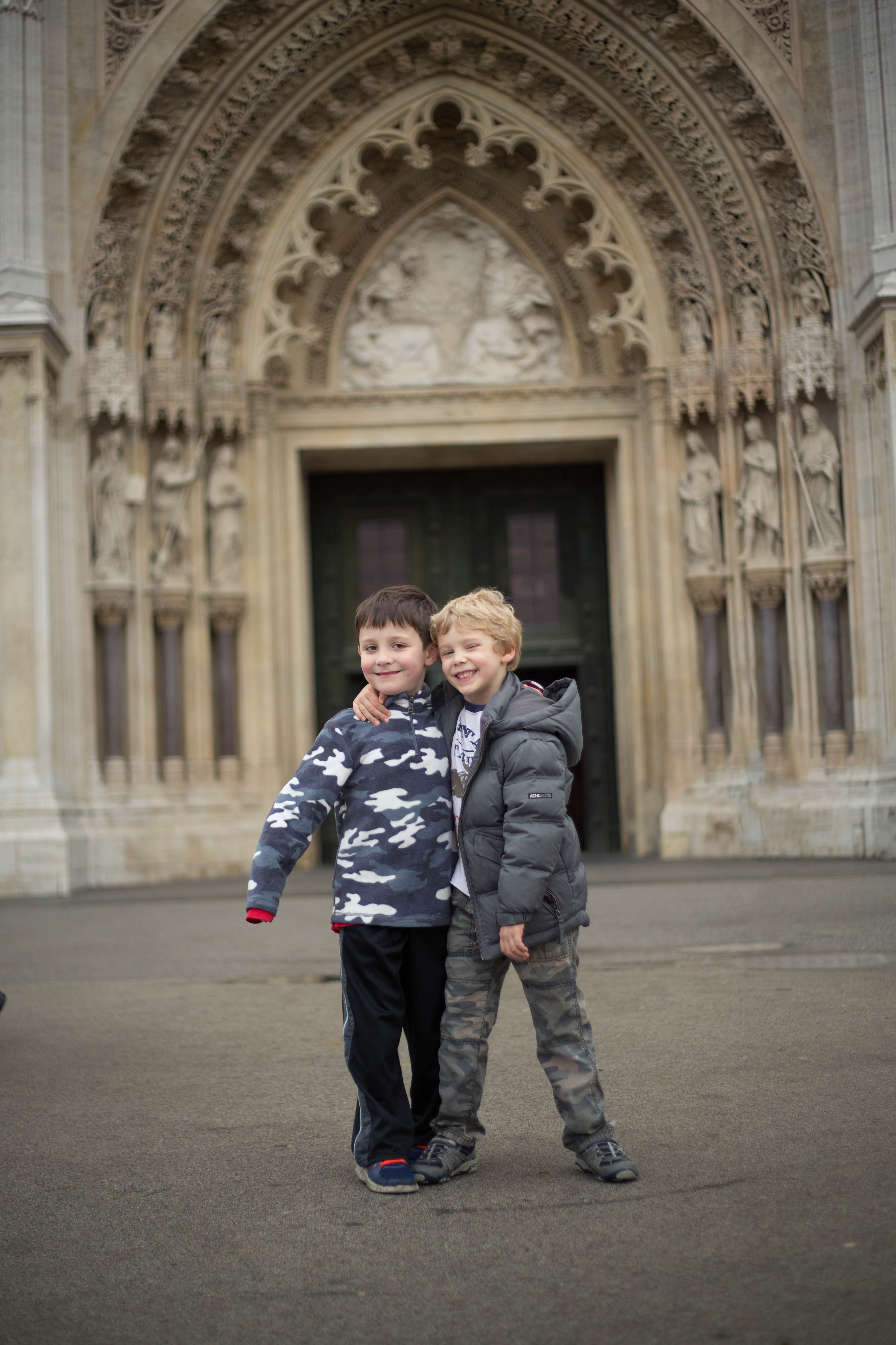 See those handsome, smiling faces? Those are the faces of boys that didn’t have to walk up to the castle, but were pleasantly surprised to be driven! That battle was won by the parents.
