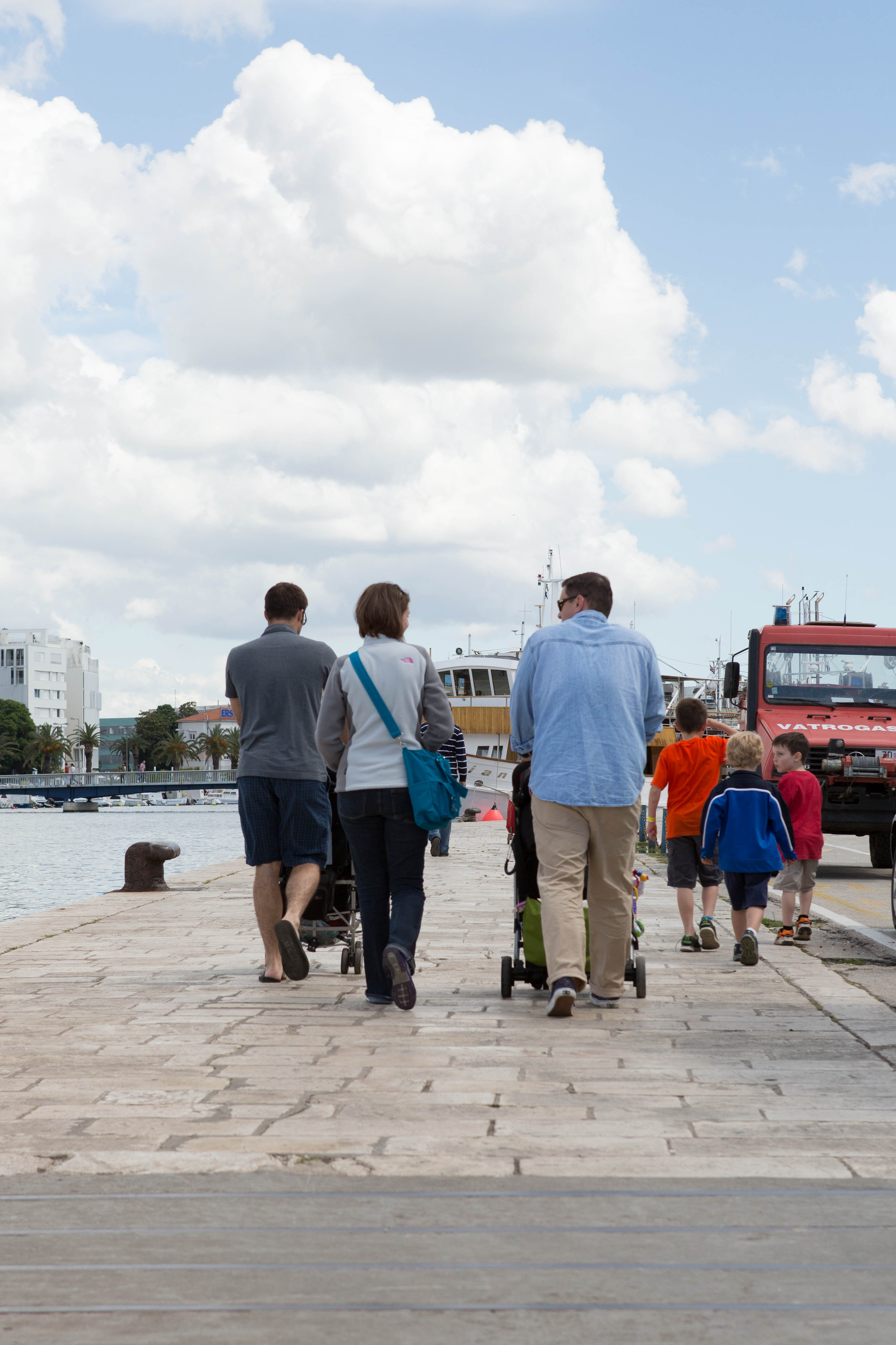 We drove several more hours and made it to our final destination, Zadar, Croatia. When I say we made it, I mean we made it to the city itself. It was pouring rain and 10:00pm, so we had to do a little searching for our hotel. In the meantime, Wyatt’s tummy was getting worse. So, in a fit of desperation, I quickly dumped the snacks out of the snack bag onto my feet and tossed the bag back to him, just in time for exactly 2/3 of the vomit to make it in. We weren’t so lucky with the other 1/3. Oh, and the bag? It maybe had a few holes in it. So, for the next 20 minutes, we drove around in the freezing rain with my hand out the window holding a bag of puke. All the while, trying to hand wipes back to the back seat to clean up the other 1/3. Never before have I wished to be Elastagirl from The Incredibles like I did that night. So, we were off to a rough start. But when we pulled up to our hotel, things began to brighten up. The fresh air may have helped a bit too.